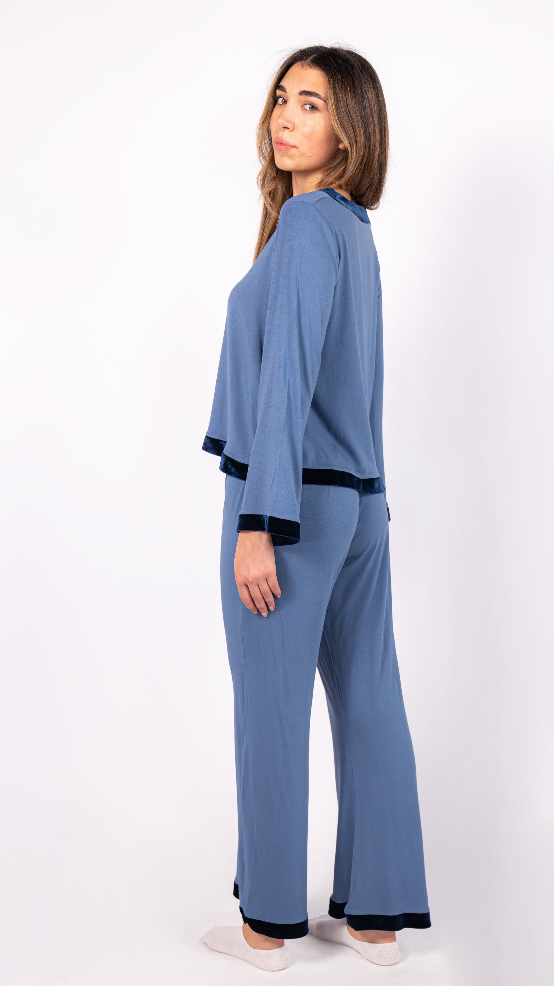 Velvet Dreams Long Sleeve Pyjama Set - Indigo